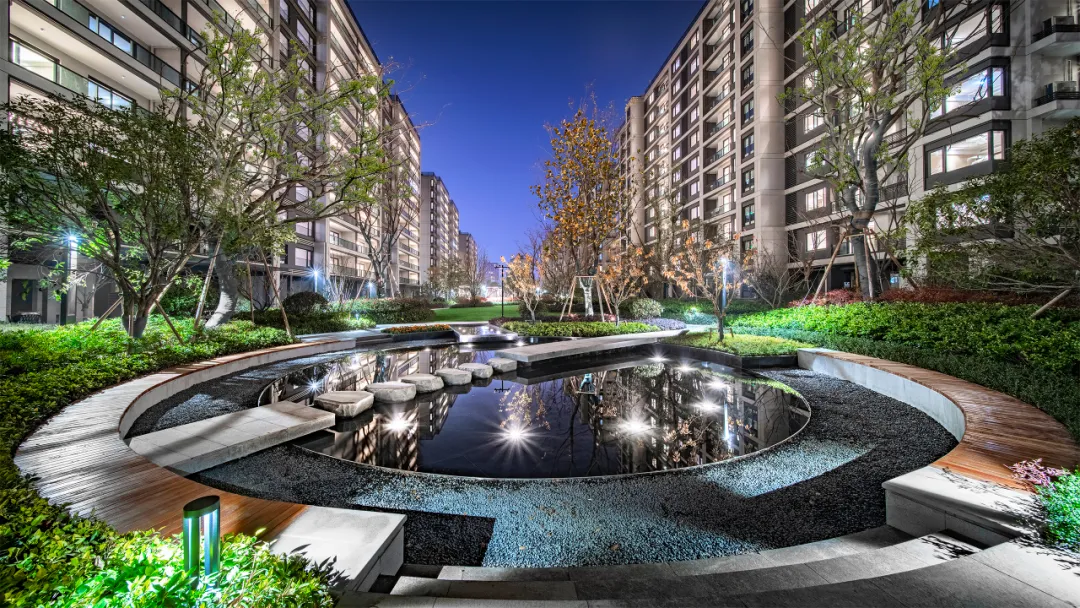 一路走来,山水转折串联起景致,营造移步换景的公共交互空间。