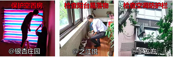 此外,工作人员还检查了园区空置房、阳台易落物品、空调防护栏等细节点位,把安全防护的方方面面都做好做扎实。