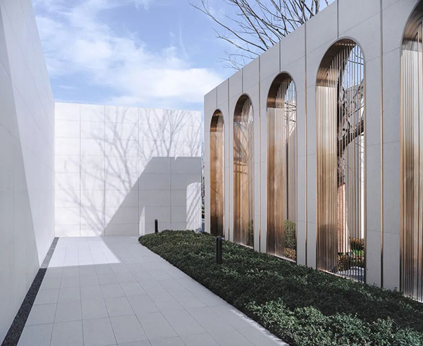 The high-grade gray façade is matched with a large area of LOW-E glass, which is stylish and simple, breaking the shackles of light. The hollow metal grille and the beige retro round arches are set against each other, which not only echoes modern abstract art, but also has traditions. The echoes of the Renaissance, floating light and gold, static shadow jade bi, make people drunk
