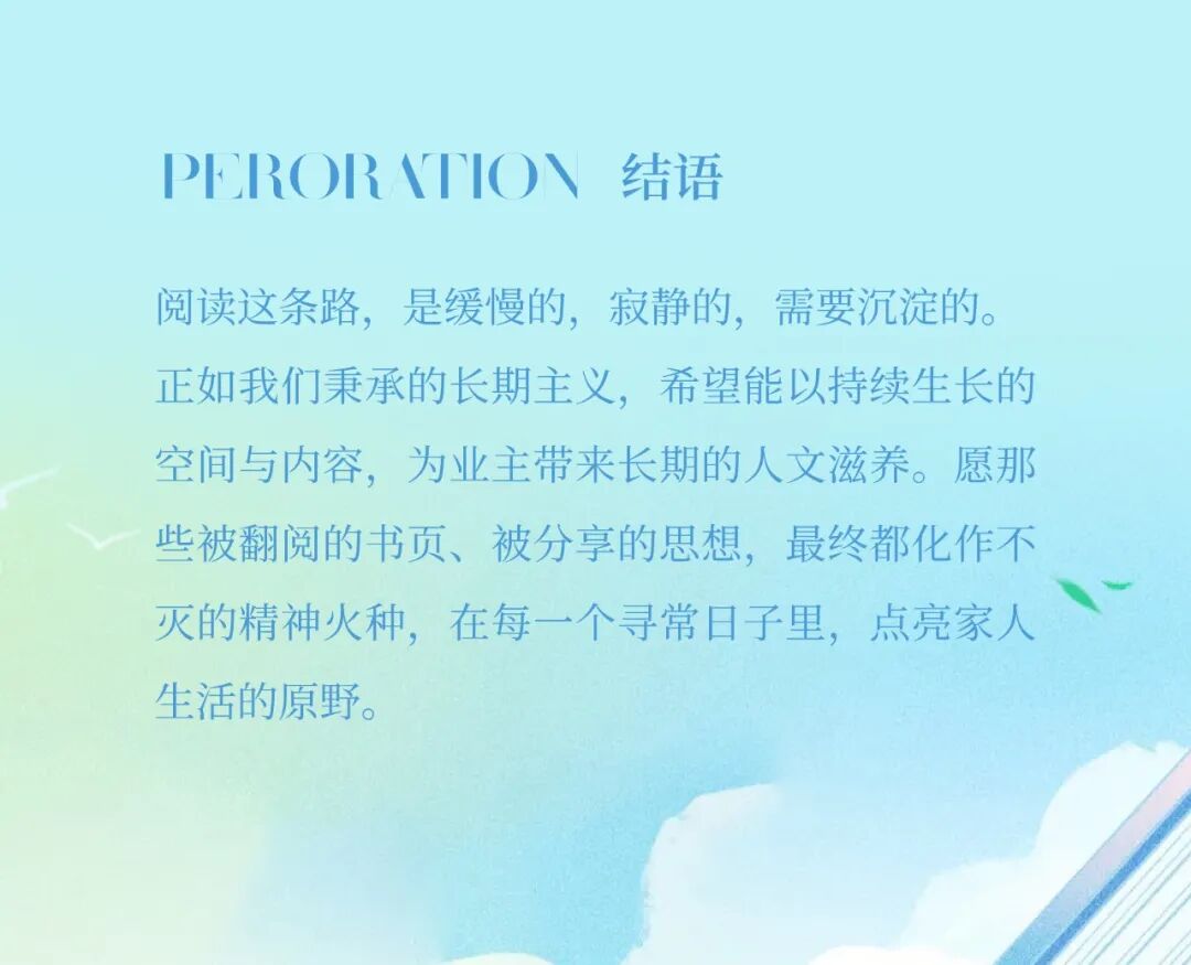 在社区的营造中,我们根据项目实际情况,用心营造精神人文空间,希望为业主们提供一个回归本我的地方,阅读、休憩、思辨.......将简单的生活,重新擦亮。