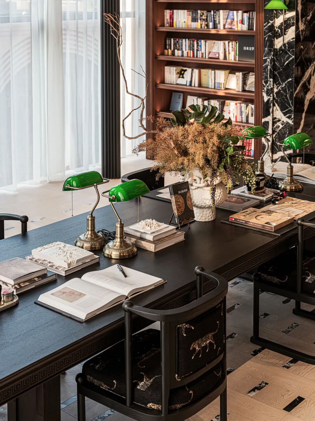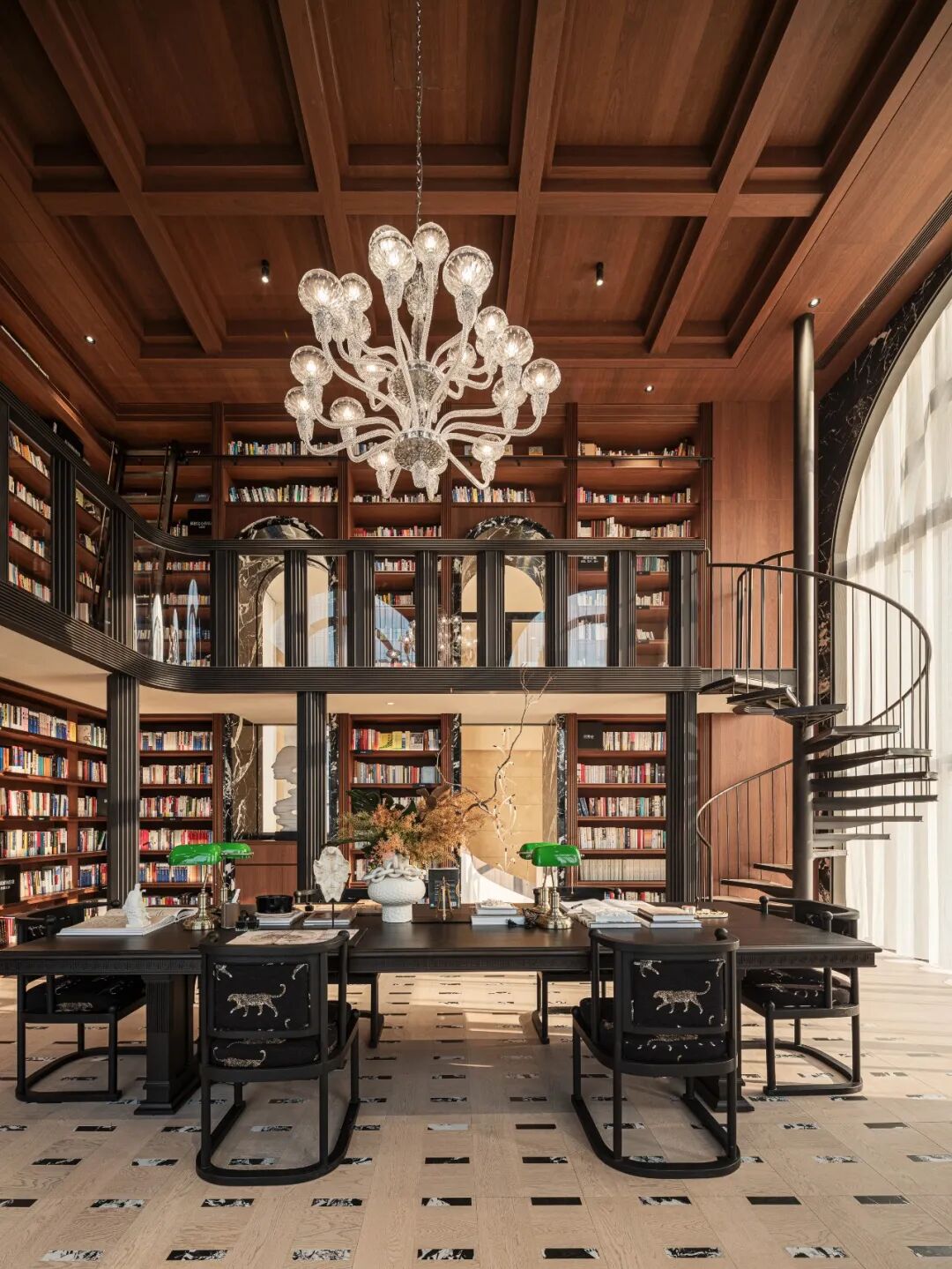 深度洞察高净值人群对于“审美溢价”和“精神滋养”的极致追求,咏印明庐打造了约12米高艺术沙龙主题的架空层空间,划分为人文艺术厅、茶叙厅、日月图书馆等,其中图书馆汲取都柏林圣三一学院的智慧光芒,以宏大的叙事感,将阅读升华为一场精神的朝圣。约6000册真书,不是冰冷的陈列,而是层层叠叠的知识回廊,等待着每一位探索者的叩访。