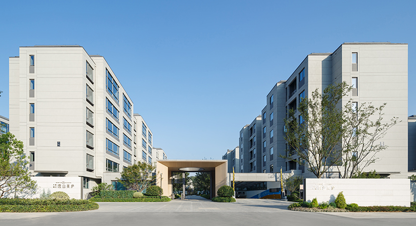 项目在通行世界的现代主义建筑风格基础上,融入简洁的框套元素,通过镶嵌的形式,实现室内与室外风景的交互交融,既能作为“取景框”,引景入室,又能成为“橱窗框”,展示自己,成为城市靓丽风景的一部分。加之双层表皮设计手法的应用,使整个建筑立面,均流露简洁、灵动、志趣不凡的气质。在园区景观中,充分发挥古典园林在借景、移景等方面的精髓,完成建筑与景观的辉映,营造不同庭院空间层层递进的关系,充分展现何为端而雅、藏与露。同时,在产品打造上,同样特色鲜明。6层真洋房的设计,在“洋房”之名泛滥的产品体系中,堪称典范,加之其城市山居的生活形态,罕有程度更胜一筹。